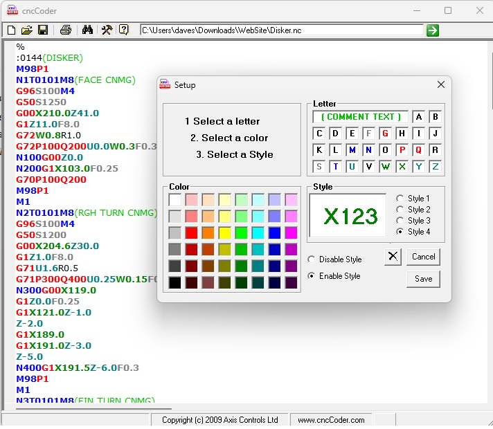 NotePad ++: Much the same but with other added functionality such as the ability to change screen colours and type faces etc. I’ve used it a fair bit and while nice it does have a lot of stuff you will never use for CNC’s. There are add-ons that can be imported to make it more useful for CNC work if you think you want to go down this road.