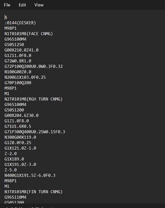 In reality that’s all you really need in the way of code editors if you are just banging keys to write up programs. Sure it’s nice to have “bells & whistles” but do you really need them (other than to impress your boss or look good) yes, toolpaths can be useful but you have that on the controller anyhows and if you are worth your paycheck you are going to run a sim before you run the program anyways.